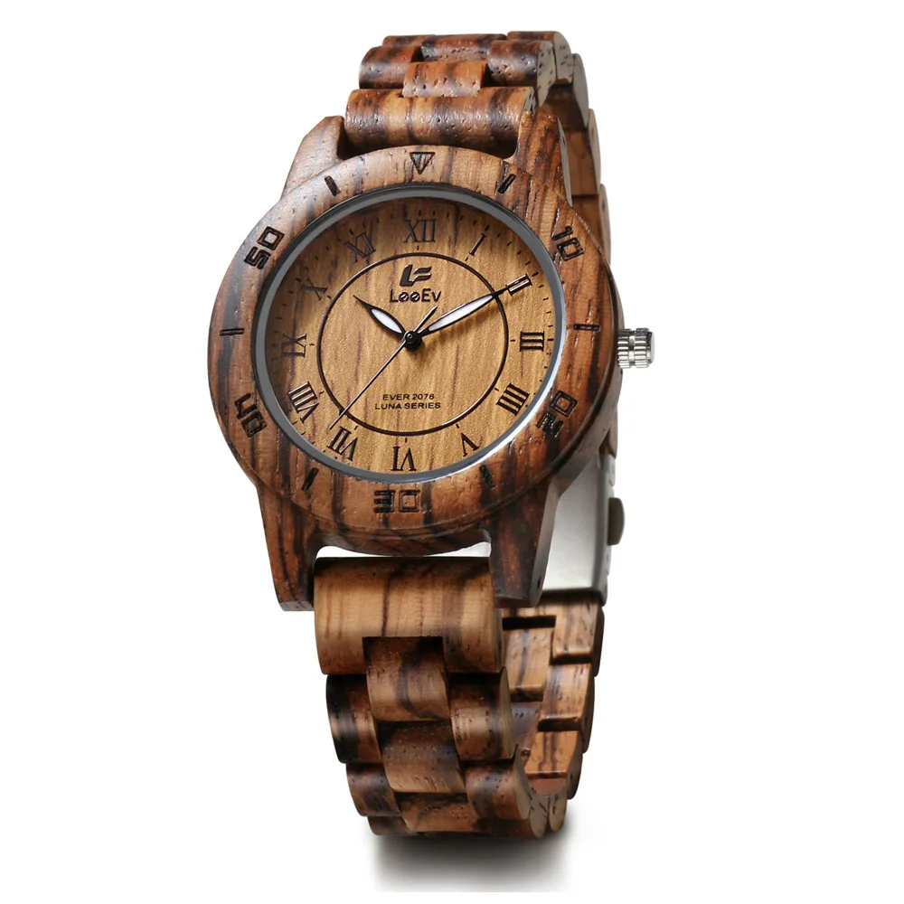 Full Wood Ladies' Unique Casual Quartz Watches Round Dial Wood Table Retro Watches Free Shipping Sa