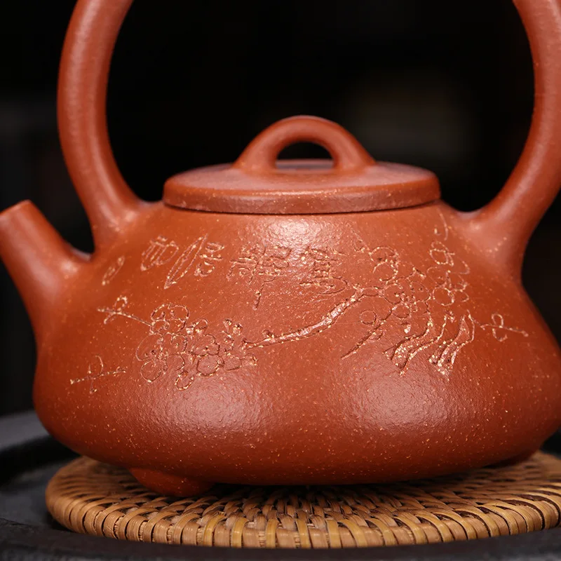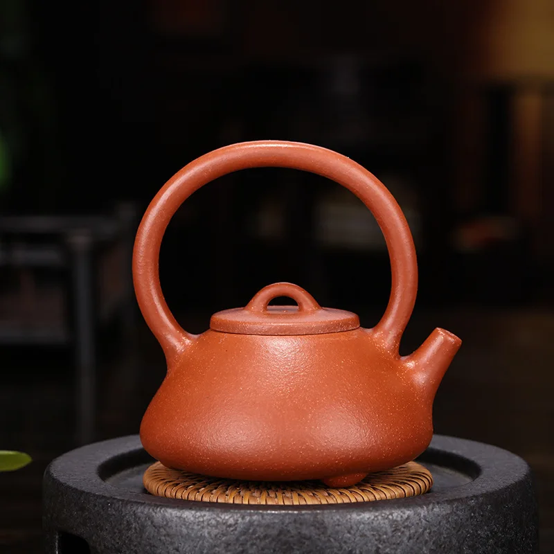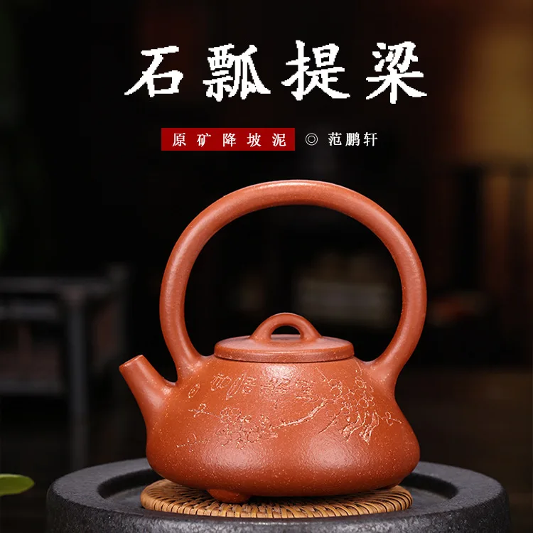 Best Quality Goods Pottery Teapot Famous Manual Handle Kettle Raw Ore Down Slope Mud Handle Stone Drum Tea Set A