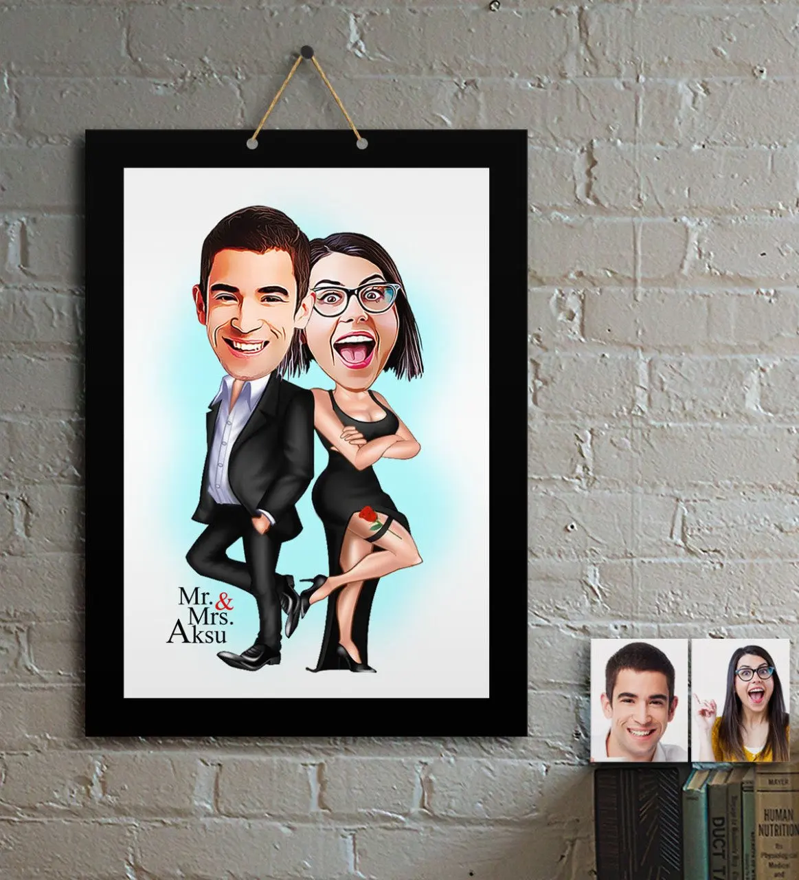 Personalized Mr. & Mrs. Smith Cartoon Wooden Table