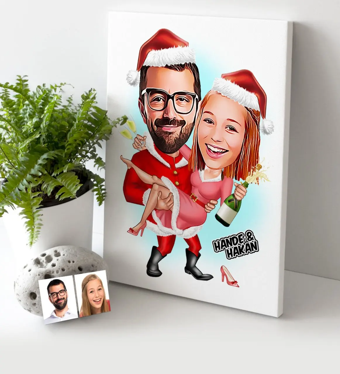 Personalized Christmas Theme Valentine Caricature Of Canvas table (30x50 cm.)-2