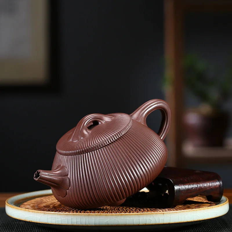 ORIGINAL Purple Sand Pot Full Handmade Famous Artist Shao Meihua Ore Mine Purple Mud Ribbon Stone Pot Kungfu
