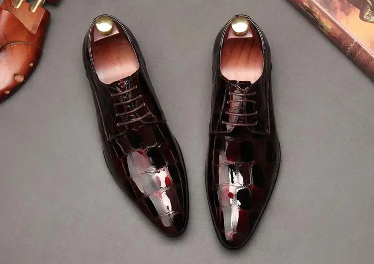 Shoes men genuine patent leather stone pattern smart casual shoes lace up red wedding single shoes