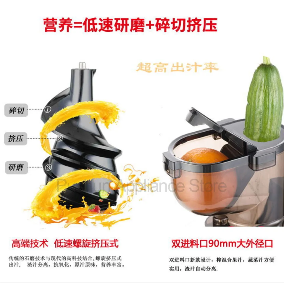 220v low speed Large Wide Mouth Feeding inlet Whole Apple orange Slow Juicer Soya-bean tofu Vegetab