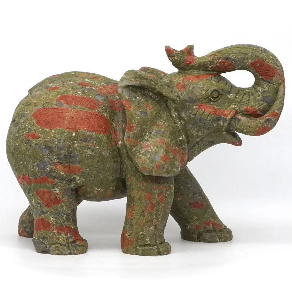 REVIEW TOP SELLER Elephant Statue Natural Gemstone Unakite Crystal Healing Reiki Home Decor 6.1"