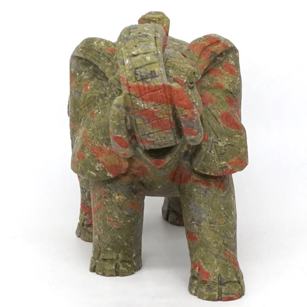 Elephant Statue Natural Gemstone Unakite Crystal Healing Reiki Home Decor 6.1"