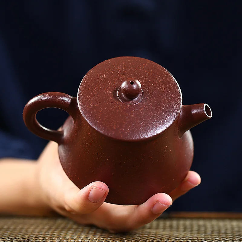 TOP Goods Yixing Dark-red Enameled Pottery Teapot Raw Ore Coarse Sand Famous Manual Waist Line Stone Dr