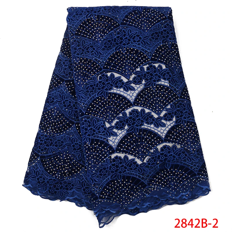 TOP Royal Blue High Quality Velvet Lace Nigerian Laces Fabric African Fabric Lace French Fabric with St